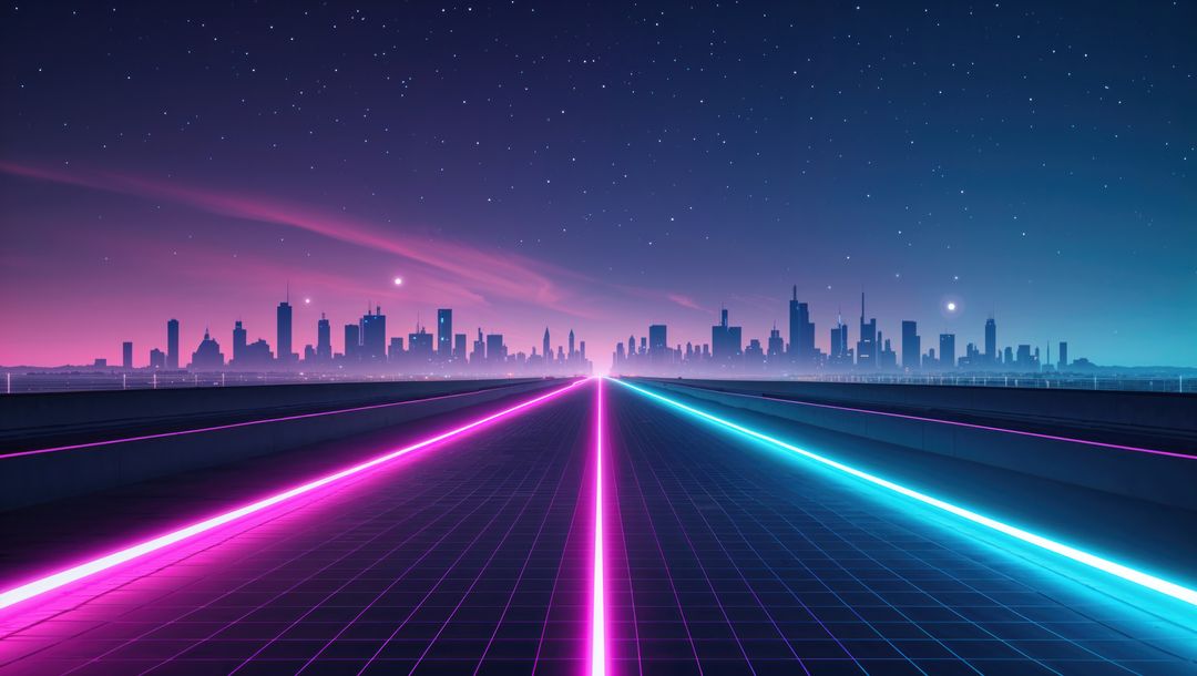 - Futuristic Cyberpunk Neon Highway Leading to City Skyline