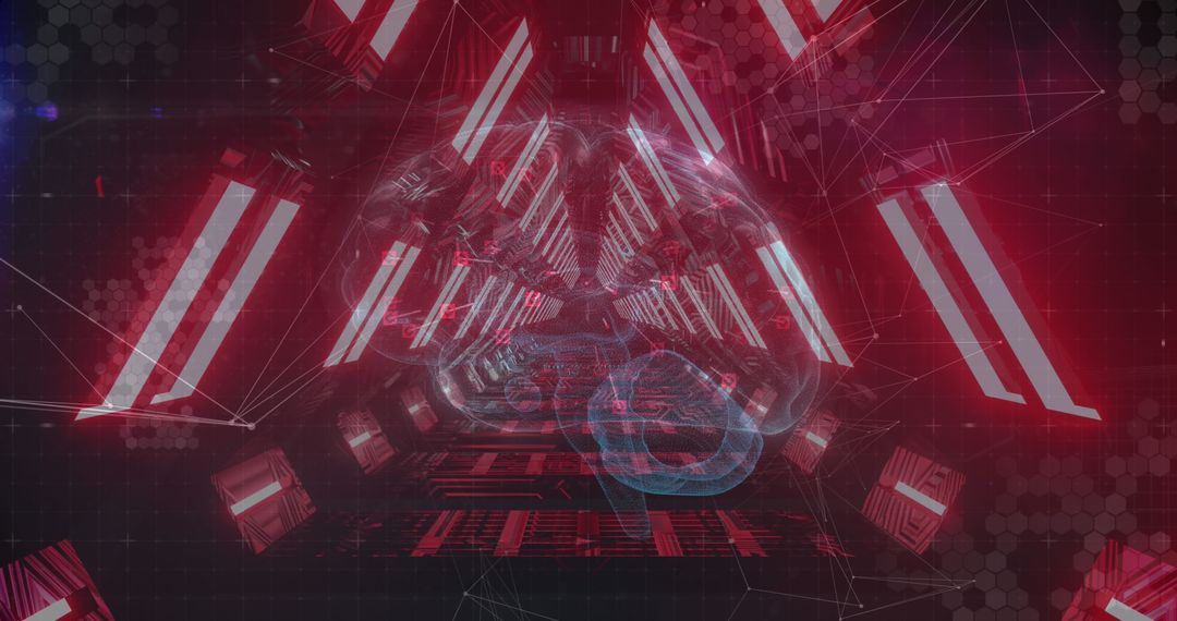 Futuristic Digital Brain with Neon Technology Elements Image