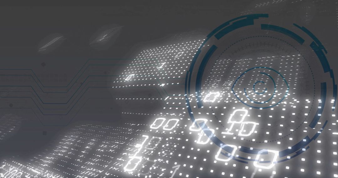 Visual showcases blending of binary code with advanced digital interface, creating tech-inspired theme. Perfect for illustrating themes on digital security, innovation, or high-tech design. Ideal for presentations, websites, and educational resources on modern technology and cybersecurity innovations.
