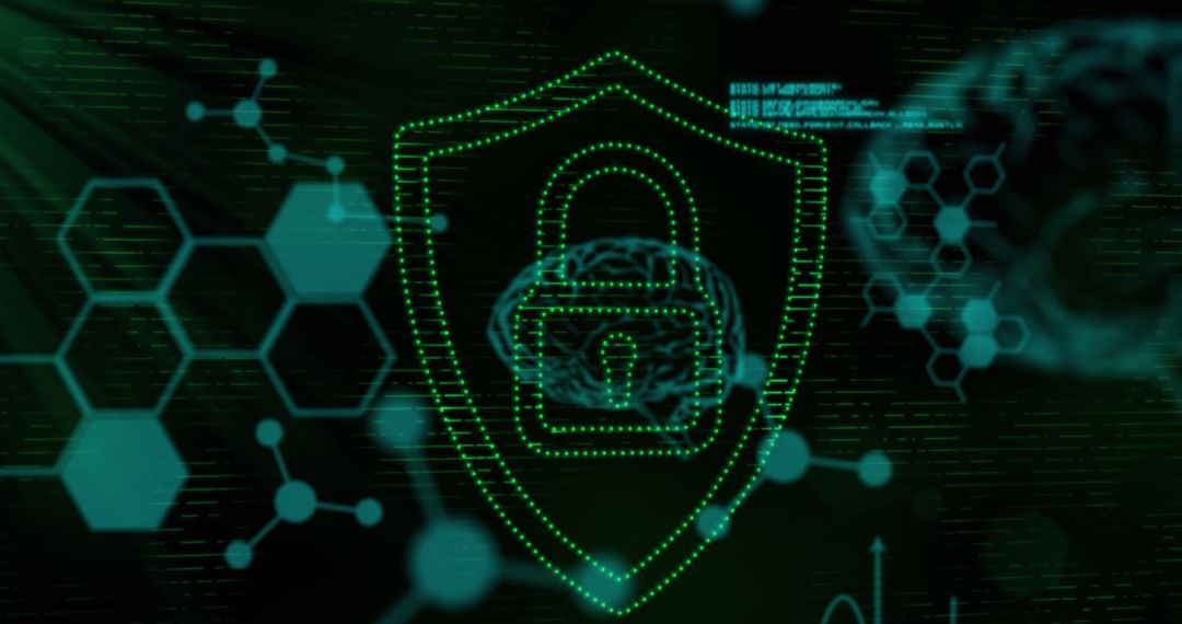 Image depicts a futuristic digital security concept with a prominent green padlock symbol overlaying abstract data patterns. This visual represents cybersecurity and data protection themes alongside technology-enabled information processing. Suitable for use in cybersecurity presentations, technology research articles, or educational materials on data protection.