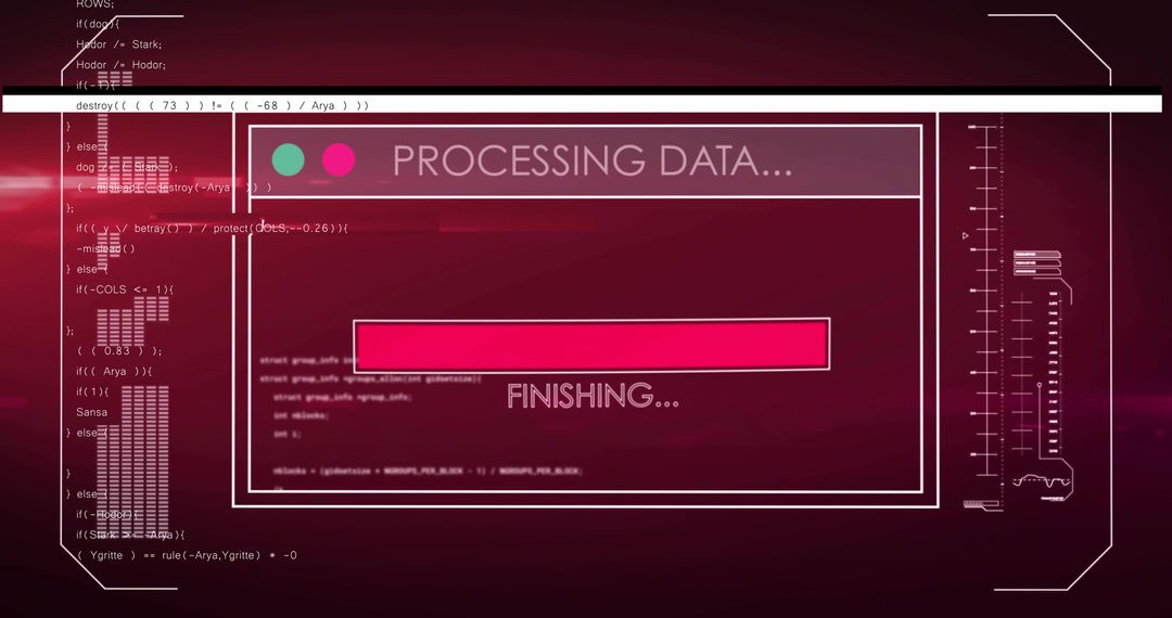 - Futuristic Magenta Data Processing Interface Showing Progress Bar and Analytics HUD