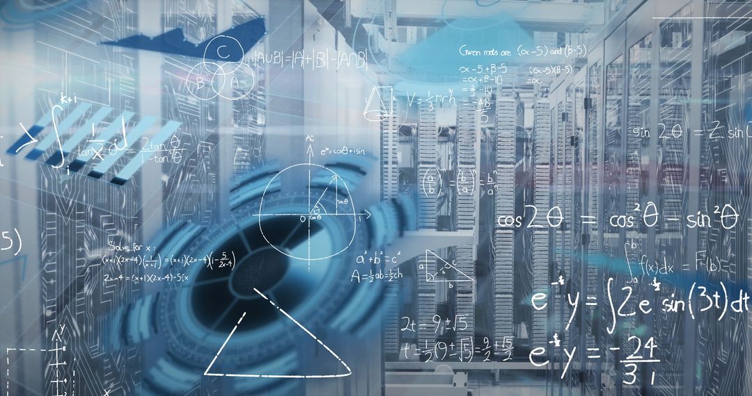This illustration features a futuristic concept with scientific equations and cityscapes superimposed over digital data processing imagery. Suitable for technology-focused presentations, innovation articles, or visual content in the digital transformation field, showcasing advanced technology and the metaverse. Use in educational materials about blockchain, coding, or cyber innovation applications.