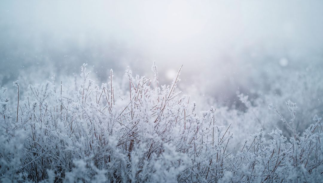 AI Generated Image. Misty winter meadow featuring hoarfrost crystals coating dried grass and seed heads, creating silvery bokeh and soft tonal palette. Cool palette of icy blues and muted grays supporting themes of solitude, calm, minimalism. Perfect for website headers, hero banners, seasonal greeting cards, winter travel brochures, social media backgrounds, editorial spreads, calendars, wall art. Leaving generous negative space for overlay text, logos, or inspirational quotes. Working well with wide horizontal crops and panoramic layouts. Suitable for branding, wellness campaigns, environmental editorials, holiday promotions, mindfulness projects. Providing high-resolution detail of hoarfrost crystals for close-up texture use and abstract background variations.