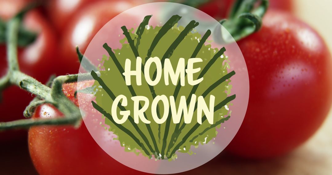 Close-up view of ripe tomatoes placed symbolically with a digitally crafted 'Home Grown' message. Represents themes of sustainable farming and self-sufficiency. Useful for marketing organic food products, gardening clubs, or local farm-to-table restaurants aiming to emphasize their use of locally-sourced and ecologically-friendly ingredients.