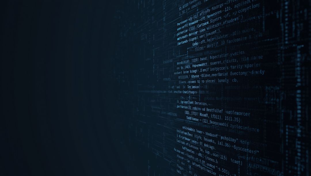 AI Generated Image. Dynamic representation of code vertically scrolling on a dark background, embodying themes of programming and cybersecurity. Light-blue and white syntax depicts elements of digital text navigation, ideal for illustrating software development process, technological advancements, and AI integration. Perfect for tech-savvy articles, cybersecurity content, or resources on coding tutorials, emphasizing future trends and coding innovations.