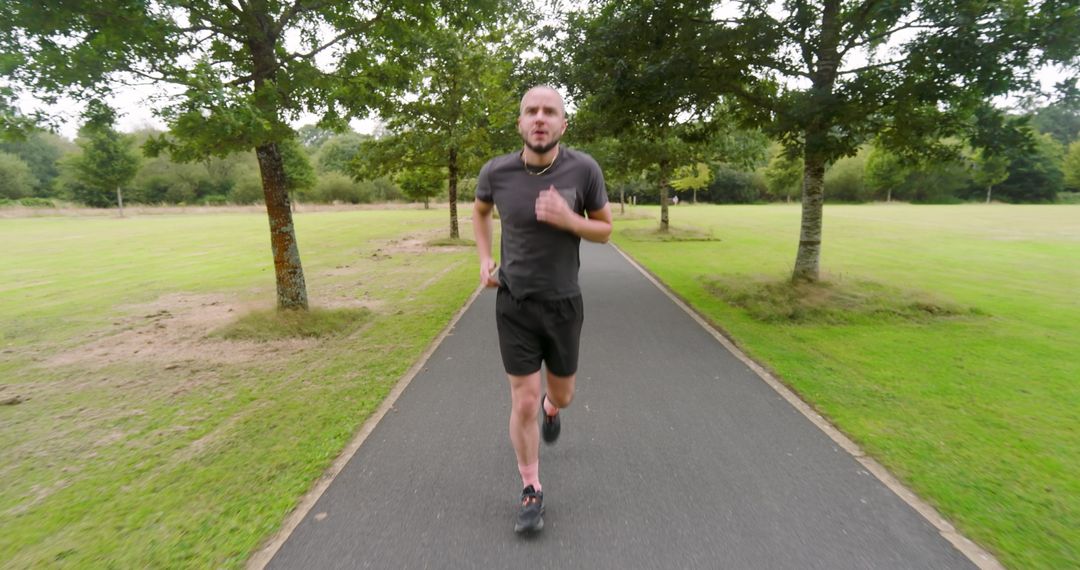 - Man Jogging on Park Path for Outdoor Fitness