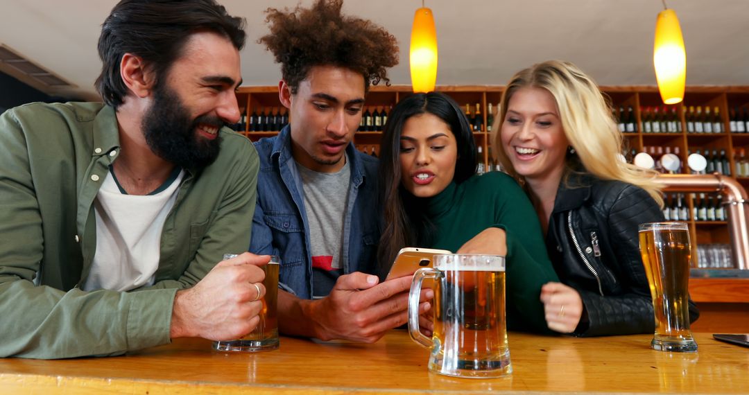- Multicultural Friends Enjoying Moments with Smartphone at Bar