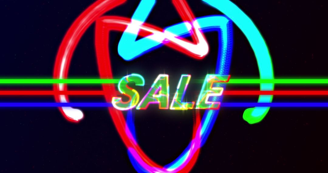 - Neon Glitch Sale Sign with Vibrant Light Trails