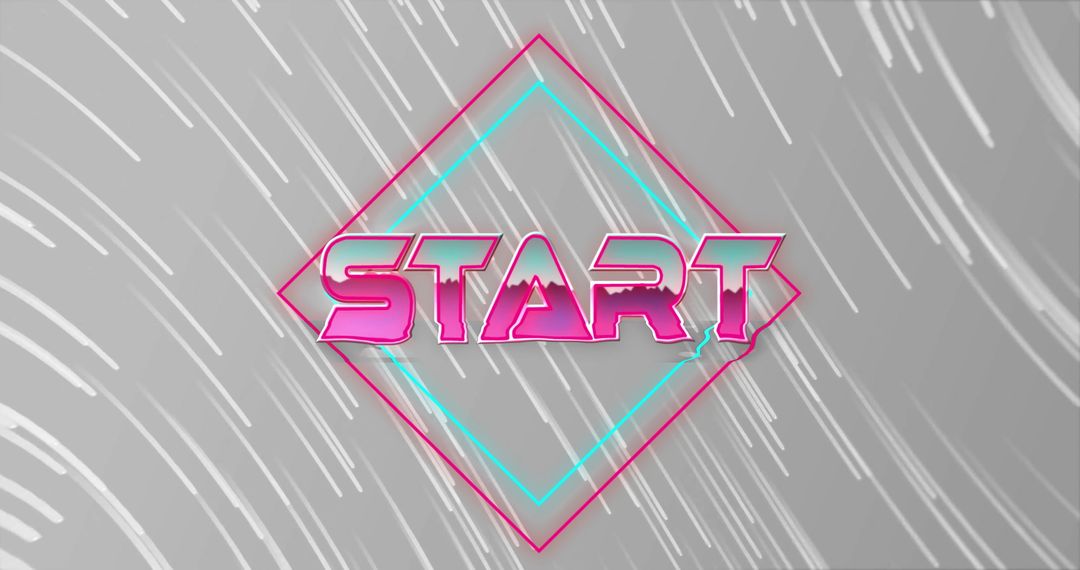 - Neon Retro Start Sign with Light Trails on Grey Digital Background