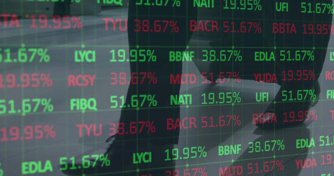 Reflective stock market figures are shown against silhouettes of business professionals, symbolizing the dynamic integration of financial data analysis and modern business operations. This visual charm encapsulates the intricacy of market dynamics and suits websites or presentations focused on finance, stock trading, and corporate environments. It conveys a modern story of global connectiveness, interfacing, and technological advancement in the financial sector.