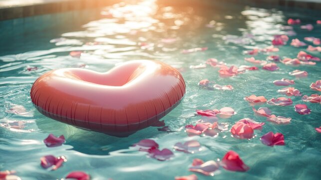 - Rose Petal Floating on Calm Water in Sunlit Pool