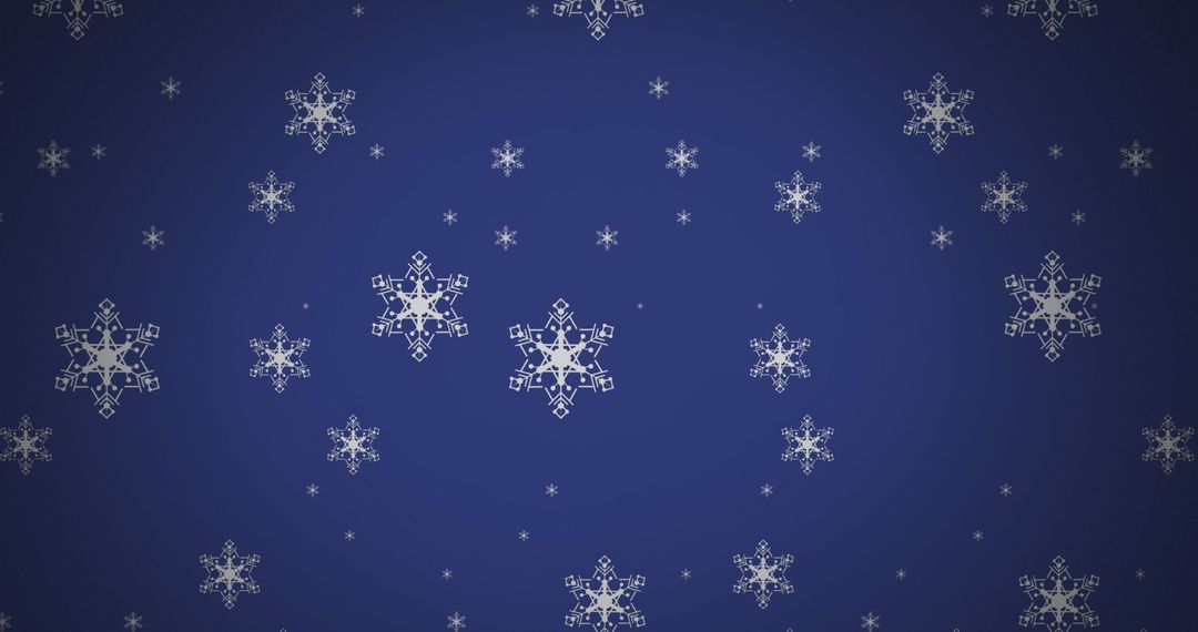 White snowflake icons scattered across a deep blue background create a seamless pattern ideal for festive designs. Perfect for use in Christmas and winter-themed projects, this design can enhance holiday cards, wrapping paper, banners, and digital invitations with a seasonal, celebratory flair.