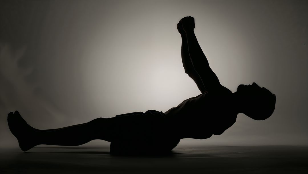 - Silhouette Male Performing Core Workout on Mat with Backlight Halo Minimalist Monochrome