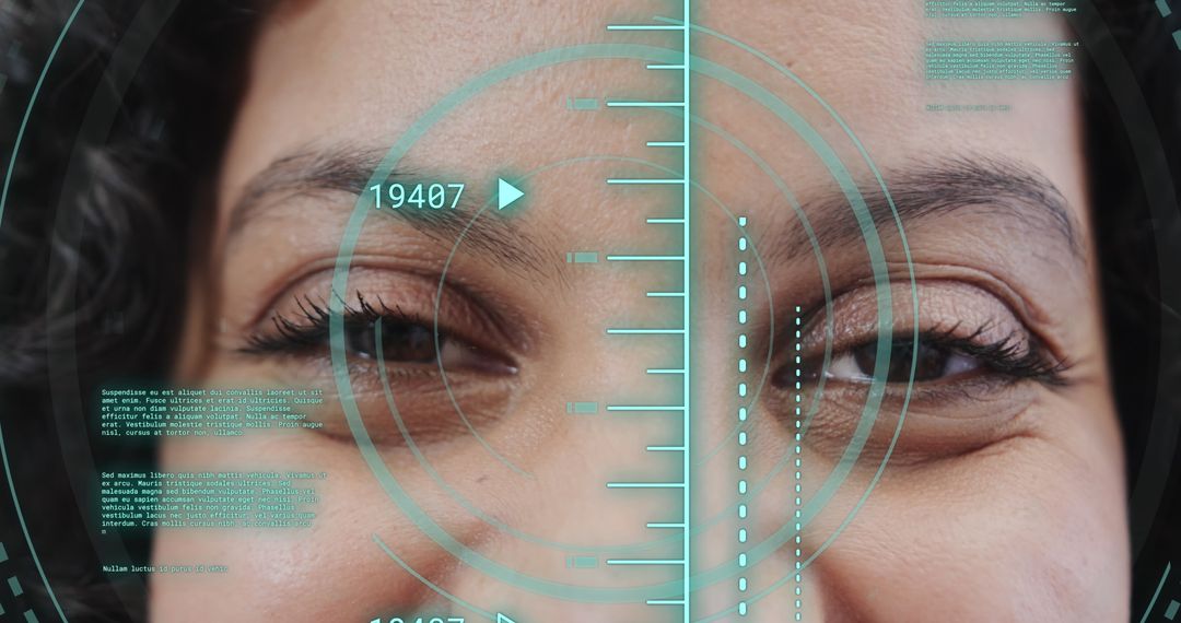 This visual shows a bi-racial female doctor smiling with a digital data interface overlaid on her face, symbolizing integration of technology and healthcare. It represents themes like medical innovation, data analysis, and futuristic advancements in healthcare. Useful for illustrating articles, presentations on medical technology, digital health evolution, and AI in medicine.