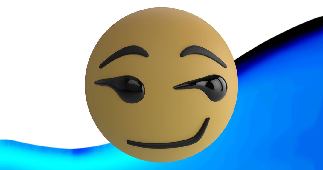 3D illustration featuring a smirking emoji against a striking blue and white background evokes playful or mischievous emotion, major element in digital communication. Useful for projects related to social media, interaction icons, online platforms, and creative artwork illustrating emotional expression.