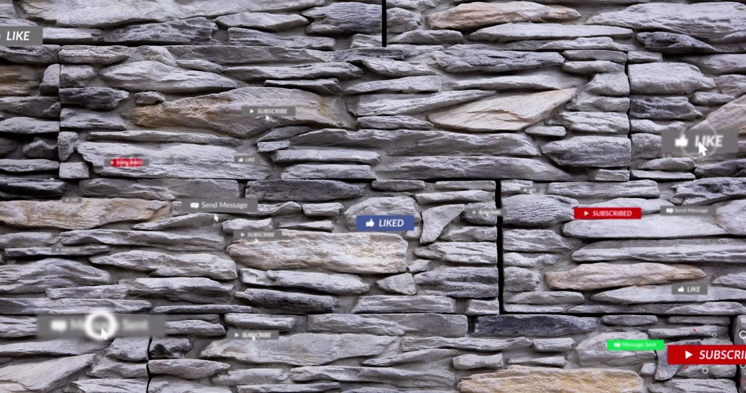 Social media icons layered on a stone background suggest a remarkable fusion of digital connectivity and raw texture. Suitable for concepts involving connectivity and social network burst within software walls. Ideal for digital campaigns, blog illustrations on digital communication evolution, or imaginative presentations mixing traditional and modern cues.