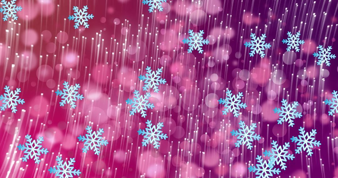 Blue snowflakes overlay rich pink and purple bokeh with vertical light streaks, creating lively winter atmosphere. Perfect for holiday-themed parties, seasonal promotions, or digital wallpapers.