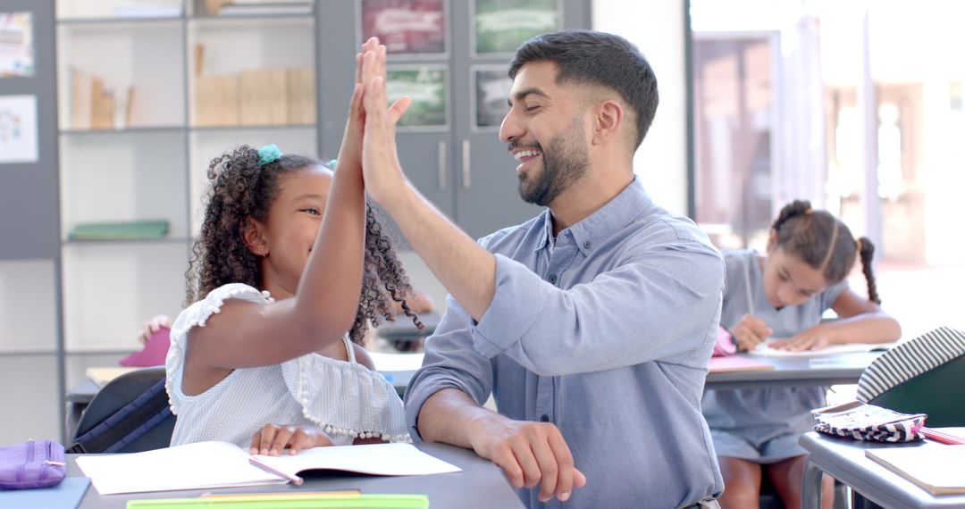 - Teacher and Student Celebrating Success in Classroom High-Five