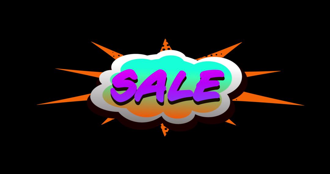Vibrant visual featuring the word 'SALE' in a bold, cartoon-style cloud overlaying a colorful explosion. Perfect for advertising campaigns, promotional materials, and promotional banners to capture attention and communicate sales or discounts effectively. Great for digital and print marketing materials.