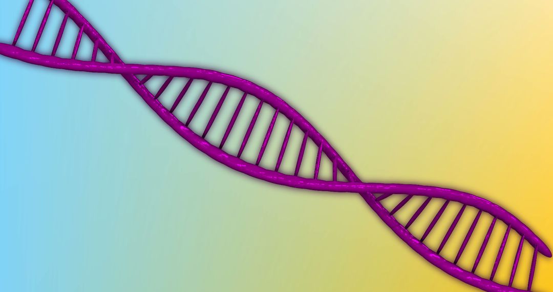 Illustration features a purple DNA strand against a soft gradient from blue to yellow, symbolizing genetic research and biotechnology studies. Suitable for educational materials, scientific presentations, and technology-related articles.