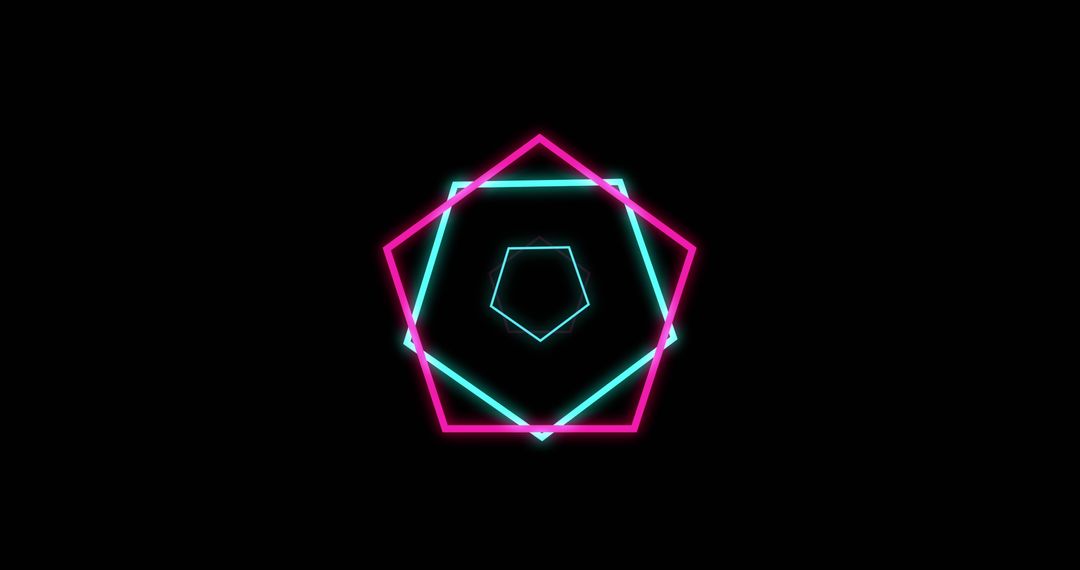 - Vibrant Spiral of Neon Pentagons on Dark Background