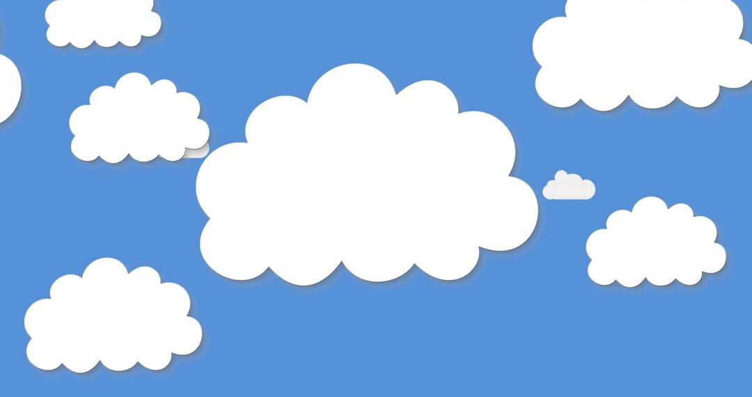 White cloud shapes depicted on a bright blue background. Ideal for use in backgrounds for websites, presentations, or creative projects aiming for a tranquil and minimalist feel. Useful for designers seeking a simple yet effective scene conveying calmness and tranquility.