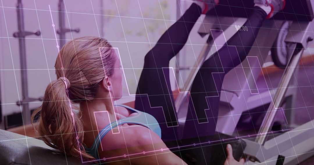 - Woman Performing Leg Press with Digital Graph Overlay in Gym