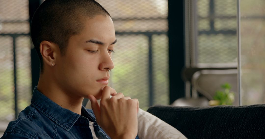 The scene captures a young man in deep thought at home. Seated in a comfortable setting, the thoughtful side profile and serene background create a peaceful atmosphere. This visual is suitable for conveying themes of introspection, mental health awareness, education, solitude, creative thinking, and decision-making resources. Ideal for blog articles, inspirational posts, mental health discussions, or educational materials.