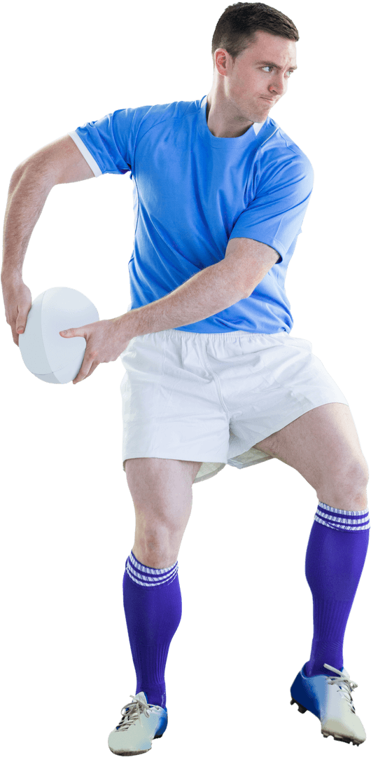 - Athletic Rugbyman in Action Posing with Rugby Ball on Transparent Background