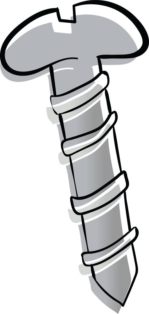 Simple illustrated screw against transparent background perfect for construction or hardware themed projects. It serves well in tool catalogs, DIY instructional materials, or any design requiring integrated hardware visuals. Opportunity to use as clipart in presentations and marketing materials.