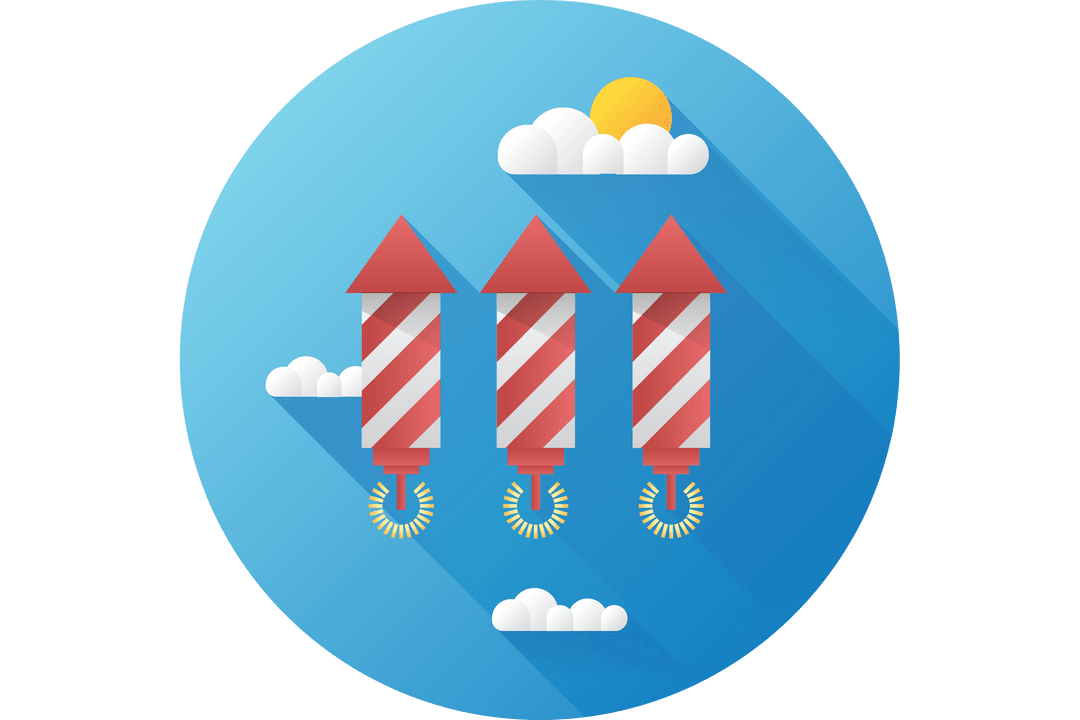 Illustrated fireworks with blue circle and transparent background, ideal for festive invitations, event promotions, or digital creative projects needing a vibrant and celebratory touch.