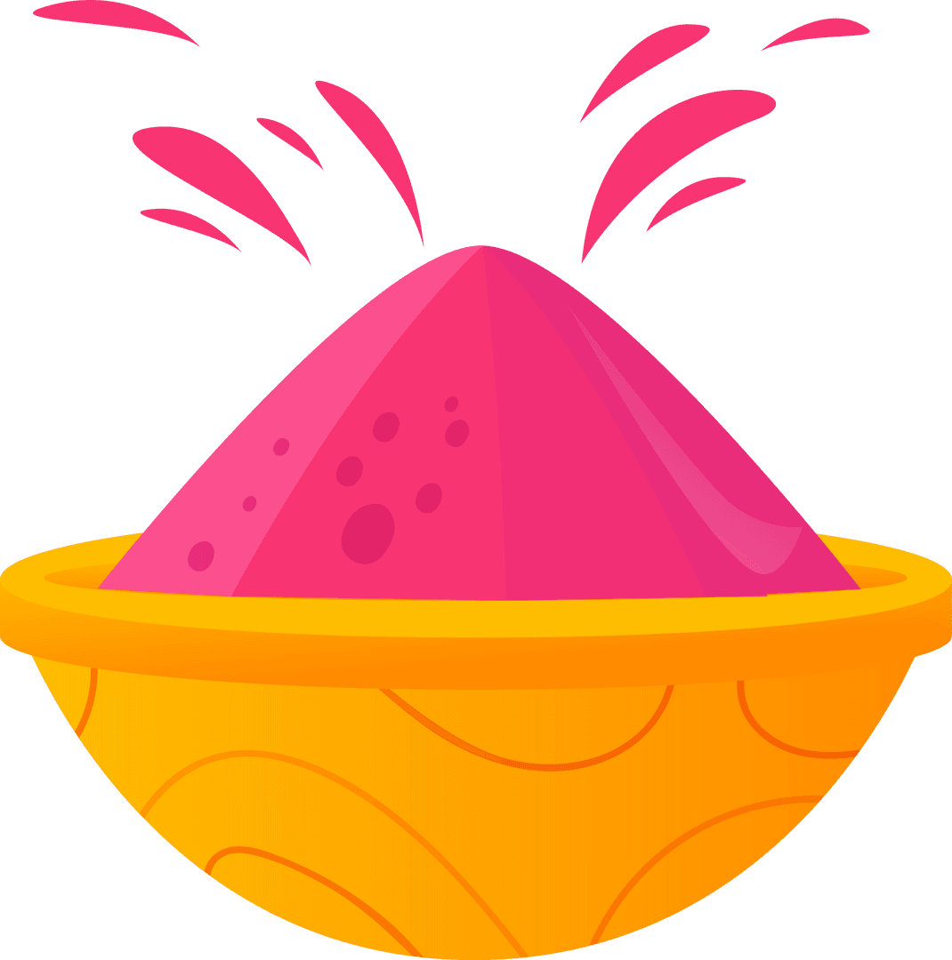 Animated artwork features a yellow bowl with pink powder creating dynamic bursts on a transparent background. Ideal for festive and celebratory designs, digital invitations, event posters, or websites needing vibrant visuals. The transparent background allows for versatile use across different design projects.