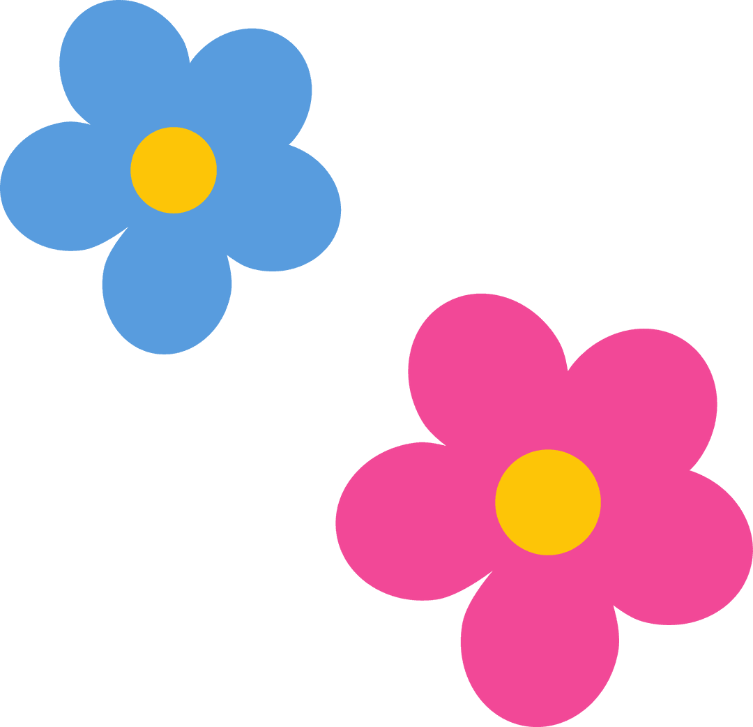 - Colorful Stylized Pink and Blue Flowers on Transparent Background