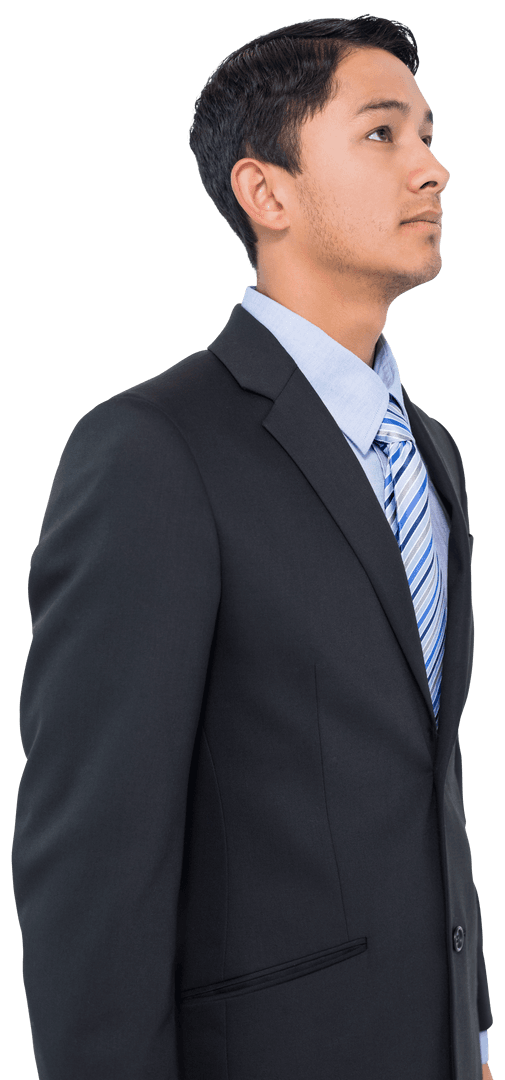 - Confident Asian Businessman Staring Upward on Transparent Background