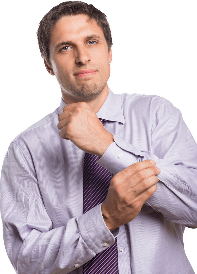 - Confident Businessman Adjusting Shirt Sleeves on Transparent Background