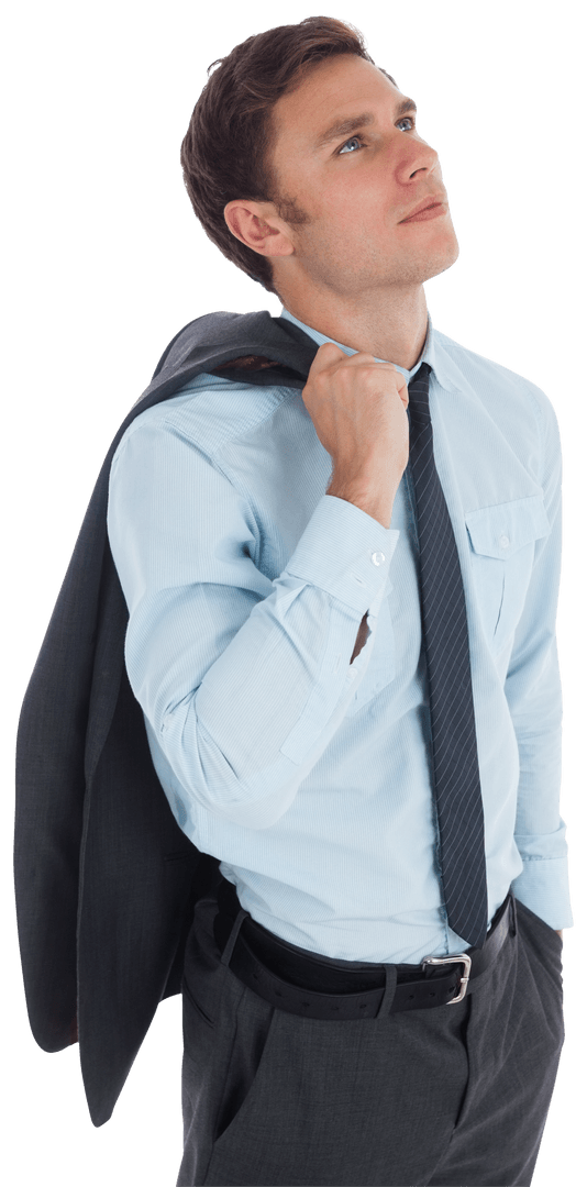 - Confident Businessman Holding Jacket Over Shoulder on Transparent Background
