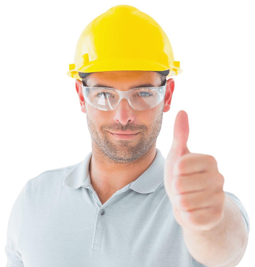 - Confident Worker Giving Thumbs Up in Protective Gear Transparent Background
