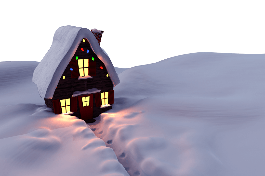 Cozy Christmas Cabin Under Snowy Blanket with Transparent Background PNG