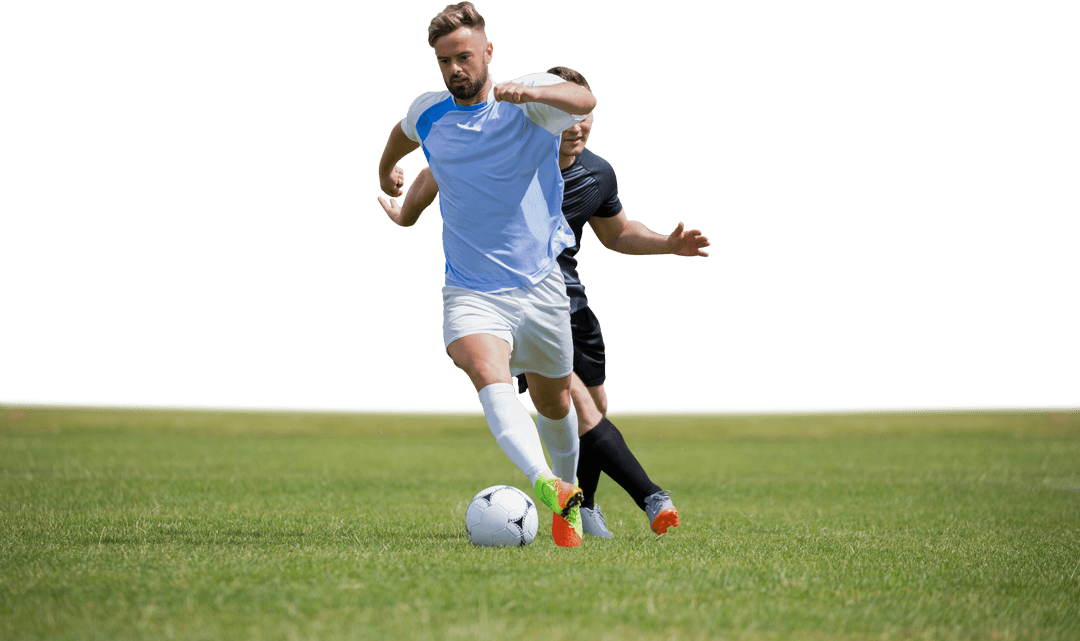 Male football players are competing on green field with transparent background, emphasizing sportsmanship and athletic dedication. Suitable for design needs in advertising sportswear, promoting diversity in sports, or illustrating teamwork in presentations.