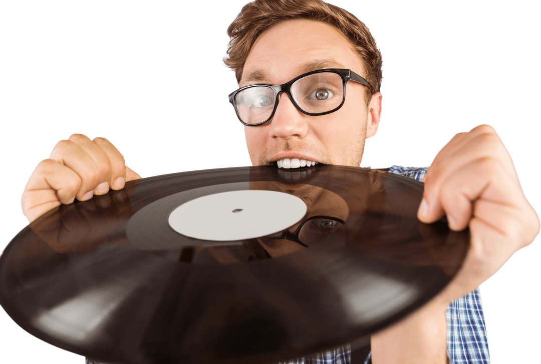 Enthusiastic Hipster Holding Transparent Vinyl Record PNG