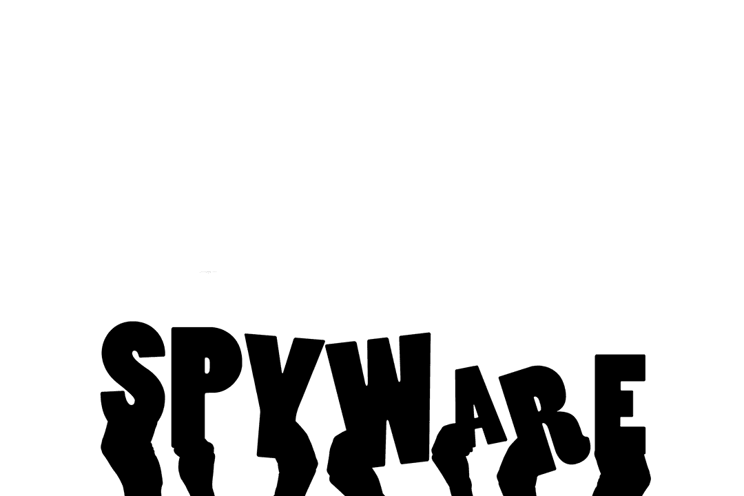 Illustration of hands holding the word spyware on transparent background depicts technology and security themes. Useful for digital security presentations, cybersecurity blogs, or design projects emphasizing online safety and protection.