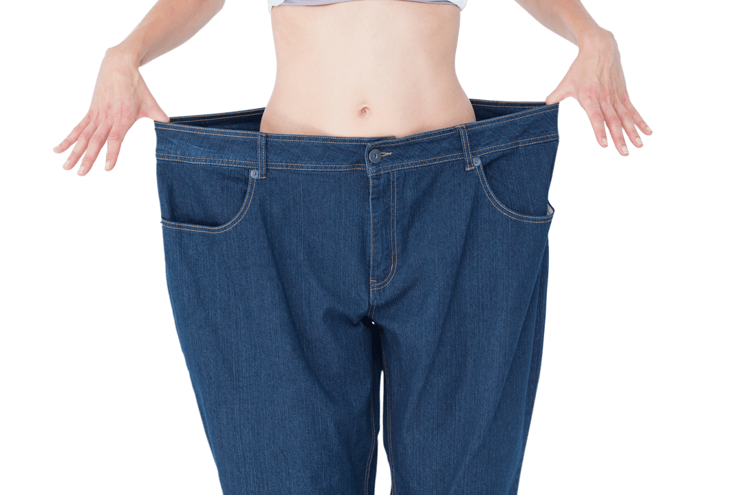 Jeans Easily Hanging off Slim Woman to Indicate Achievements PNG