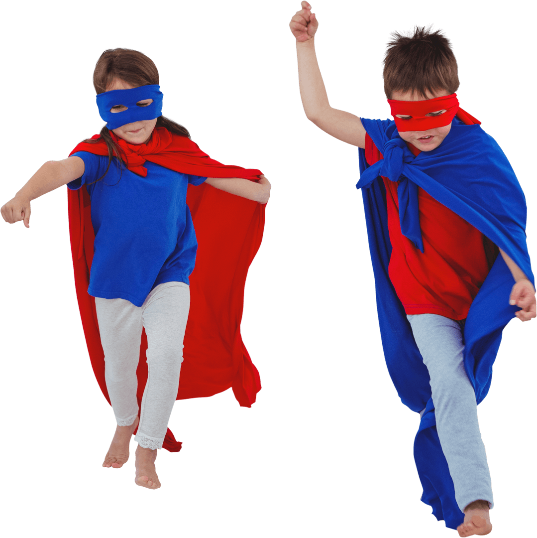 Kids Pretending as Caped Superheroes on Transparent Background PNG