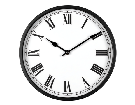 This minimalist analog clock illustration on a transparent background is ideal for time-related designs. With clear, bold numbers, it is perfect for educational purposes, timekeeping applications, and digital interfaces. Its simplistic design also allows easy integration into graphic projects, calendars, or planners.