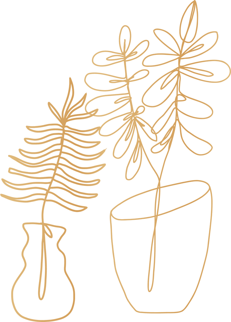 - Minimalist Gold Line Art of Potted Plants on Transparent Background