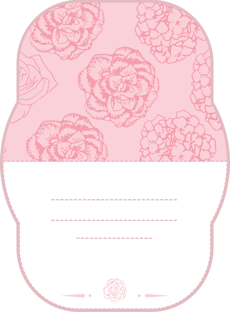 Illustration of a pink floral letter holder featuring seamless flower pattern on transparent background, suitable for design of invitations or greeting cards. Ideal for events like weddings, birthdays, anniversaries, and celebrations requiring a touch of elegance and personalization.