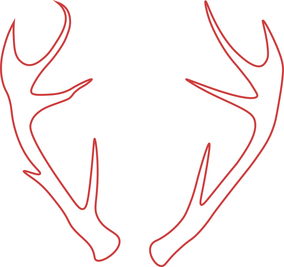 Digital art features red outlines of deer antlers on a transparent background. Suitable for hunting-themed decor, educational materials, nature-inspired designs, or logo creation in wildlife-related projects.