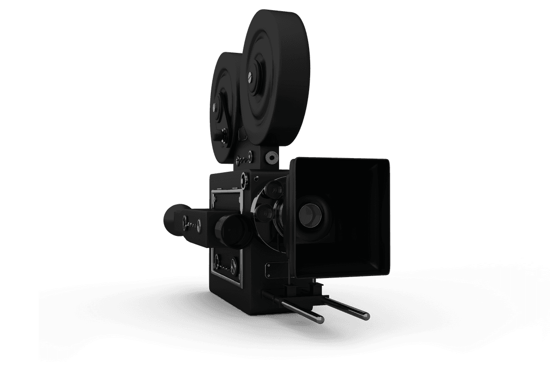 This retro film camera isolated on white is ideal for vintage-themed design projects, filmmaking course illustrations, or nostalgic creative works. Suitable for use in presentations about the history of cinematography or vintage film production. Perfect for educational resources or advertising related to vintage or retro equipment.