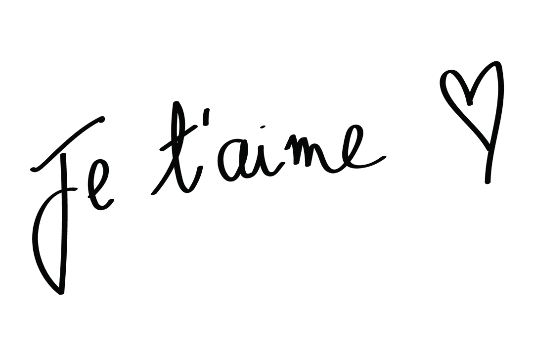 Illustration features handwritten French text 'Je t'aime' meaning 'I love you' with translucent backdrop. Ideal for romantic themes, projects, or embellishments. Perfect for cards, stationery, or social media.