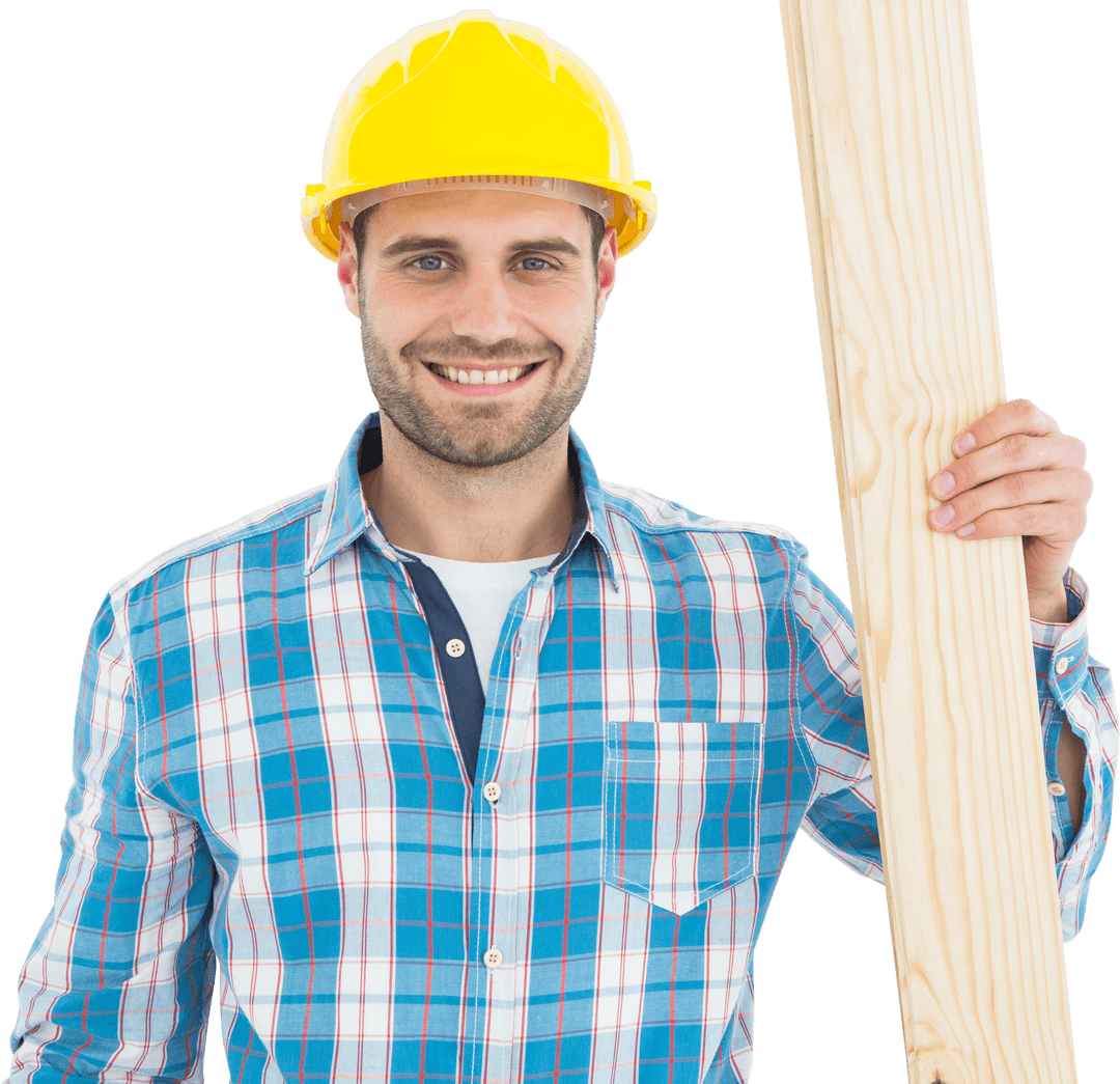 - Smiling Carpenter Holding Wooden Plank Wearing Hard Hat Transparent Background
